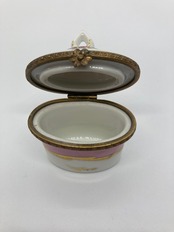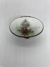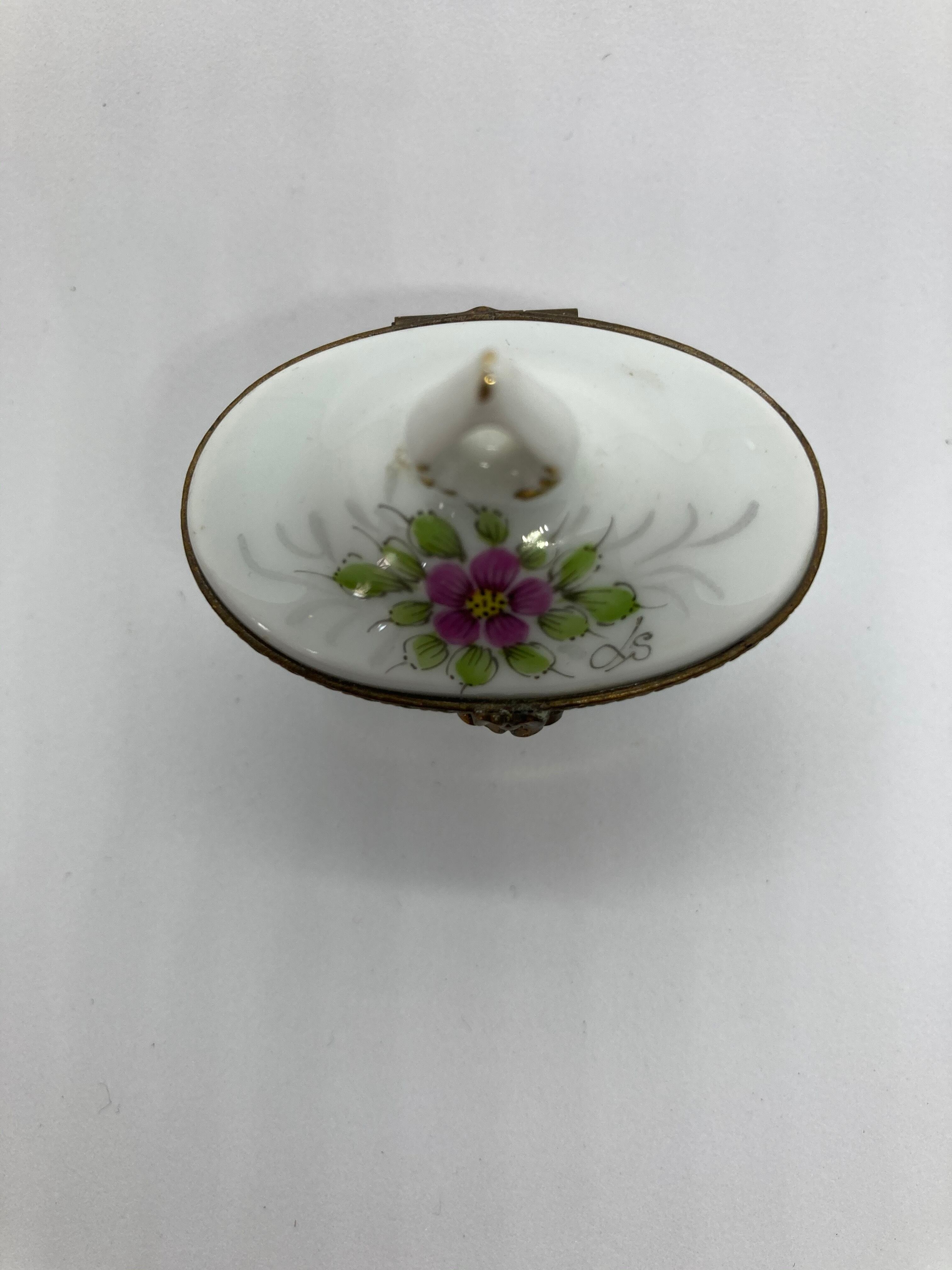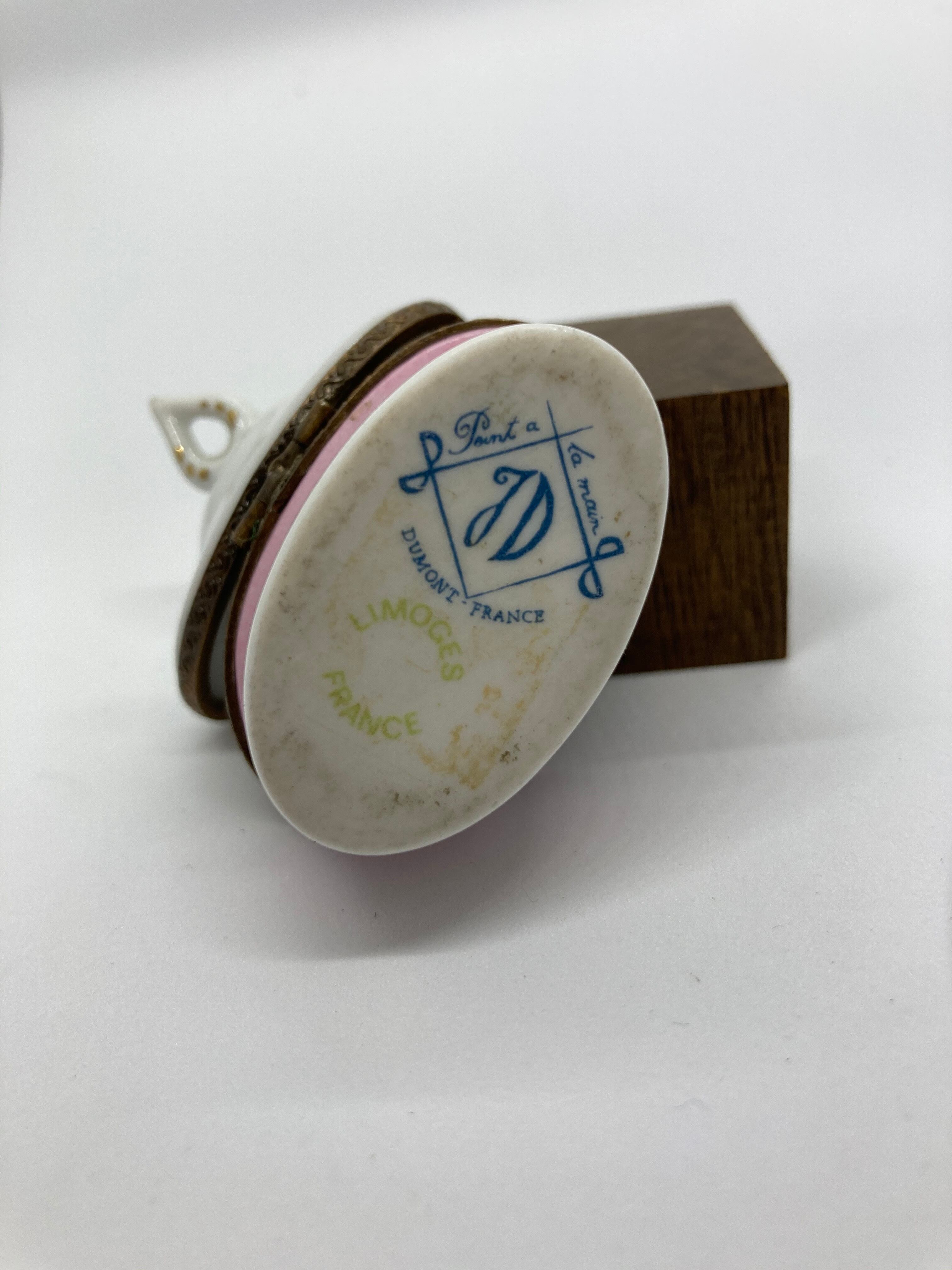 フランスのジュエリー/ピルケースです。製造元は不明ですが手のひらに収まるかわいいデザインです。幅49×高さ56ミリ。