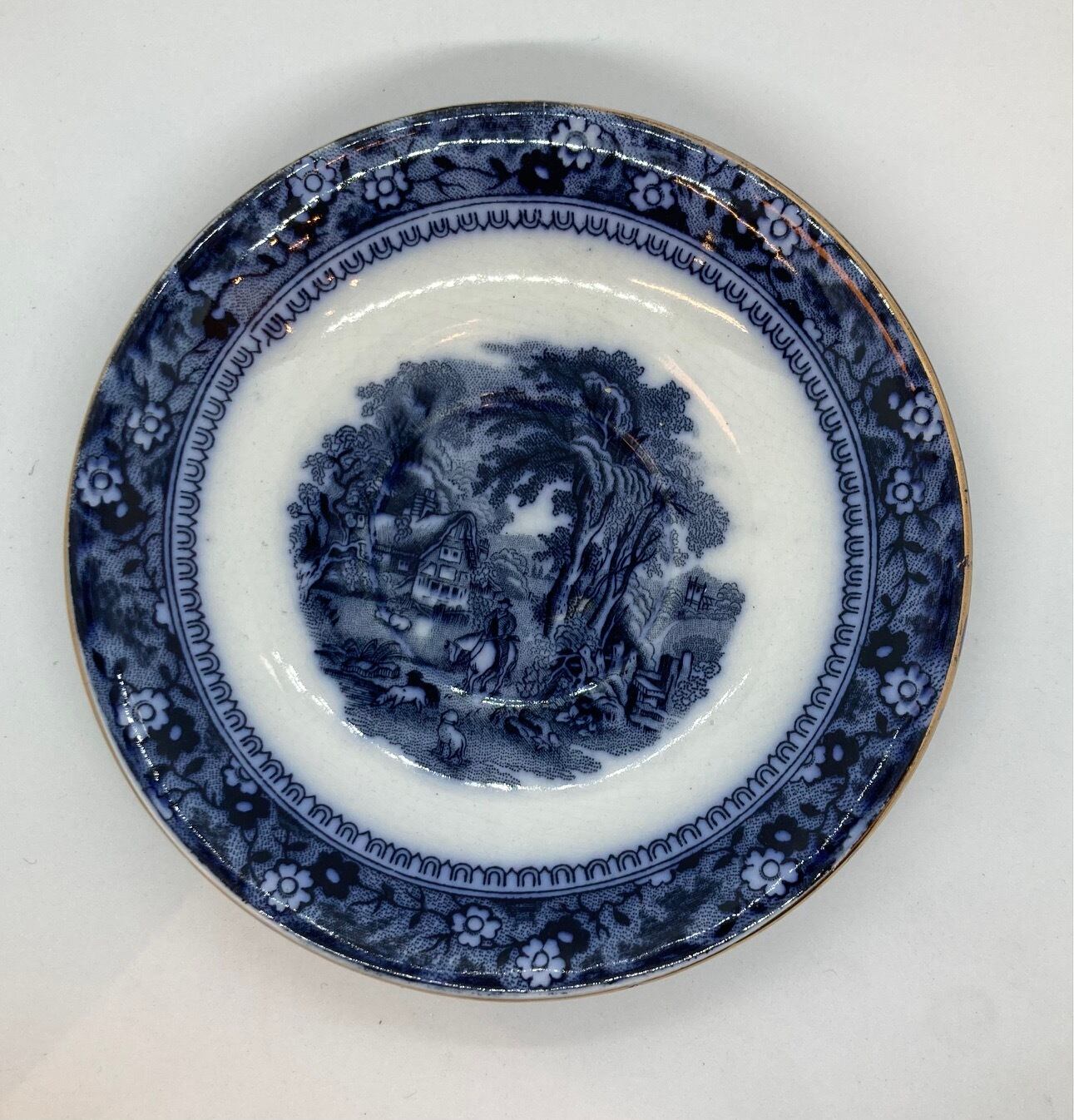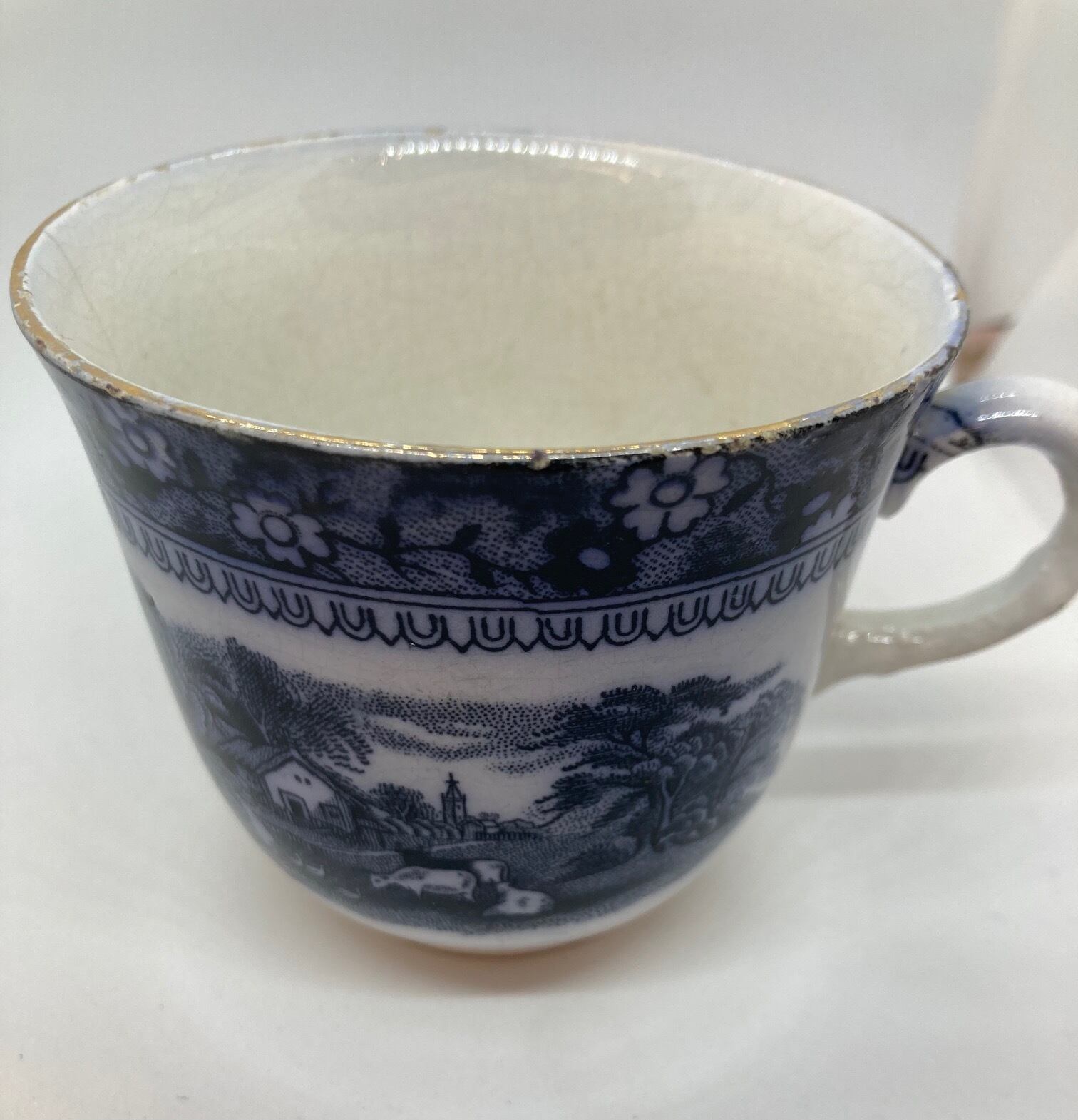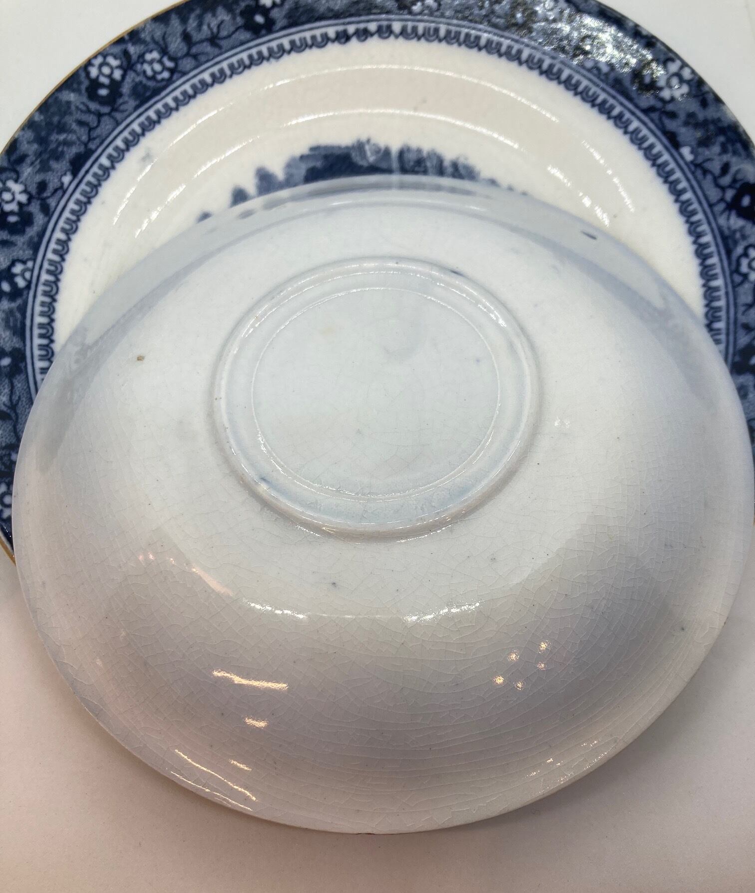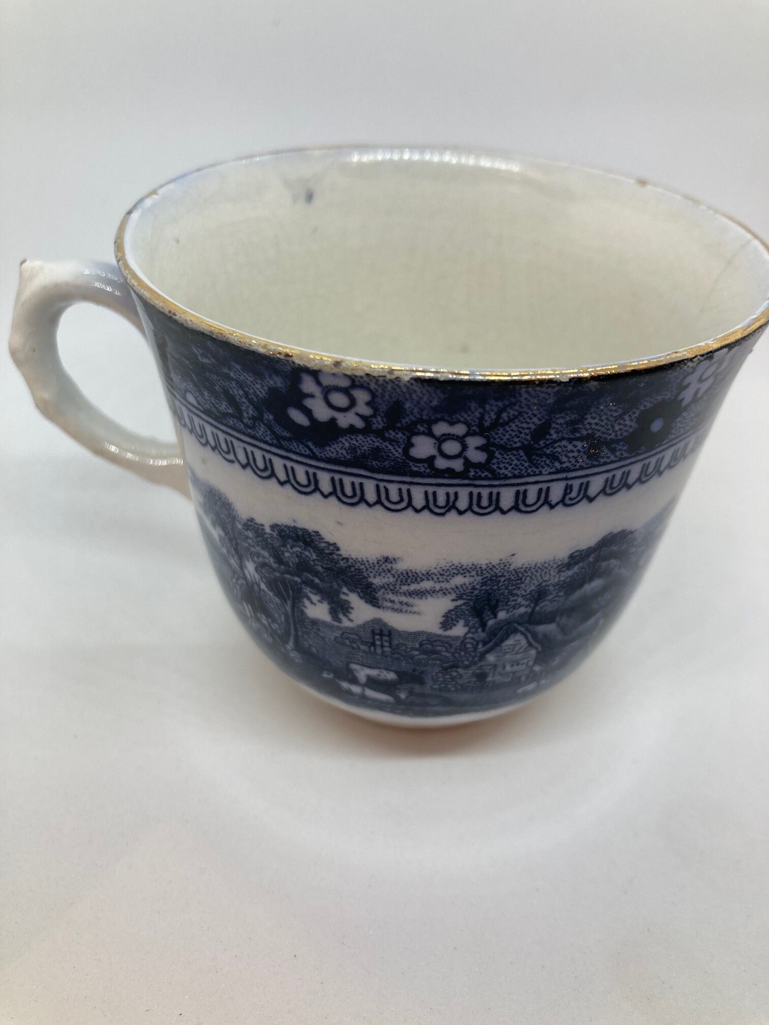 年代を思わせるブループリントです。経年劣化が目立ちますので、鑑賞用としていかがでしょうか。カップ口径84ミリ カップ用ソーサー口径145ミリ ケーキプレートソーサー口径180ミリです。
