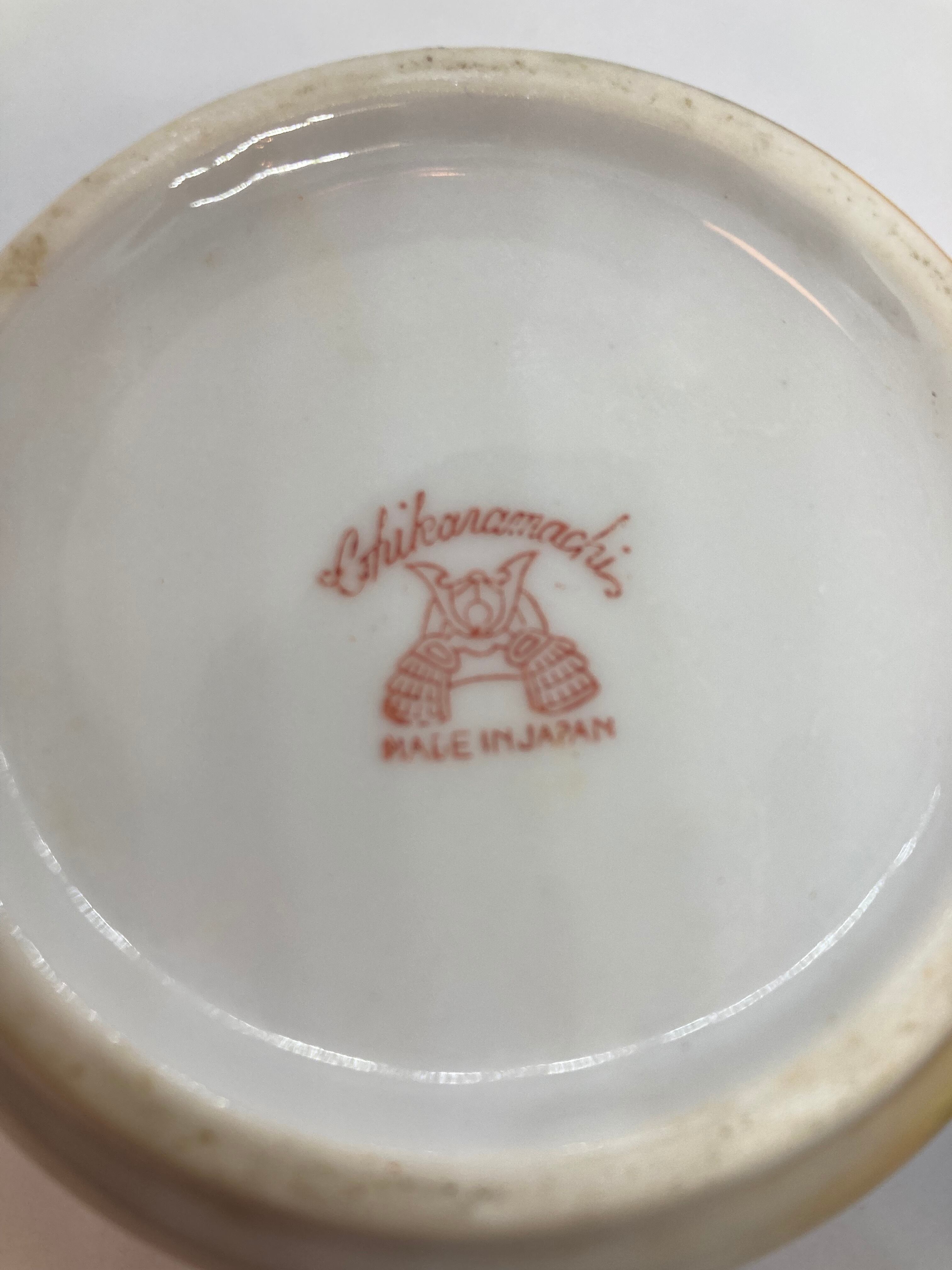 英国より持ち帰りましたオールドノリタケ製ティーポットです。ノリタケ前身の森村組が愛知県主税町(チカラマチ)に拠点を構え、Chikaramachiブランドで製造していた頃のものです。このバックスタンプは大正期の頃ではないかと思われます。本品の状態は非常に良好です。容量は満タンで400㏄入りました。胴回り径が約95ミリで、持ち手を含めた全高が約113ミリです。