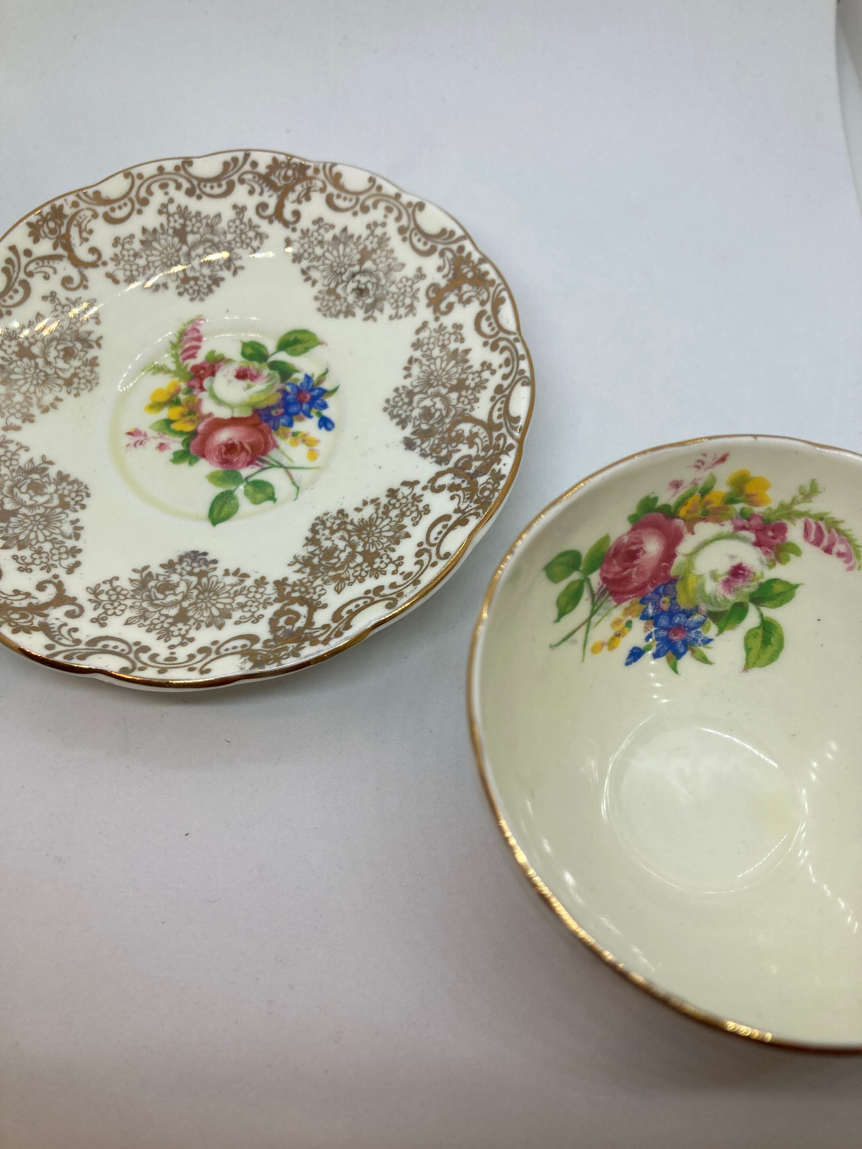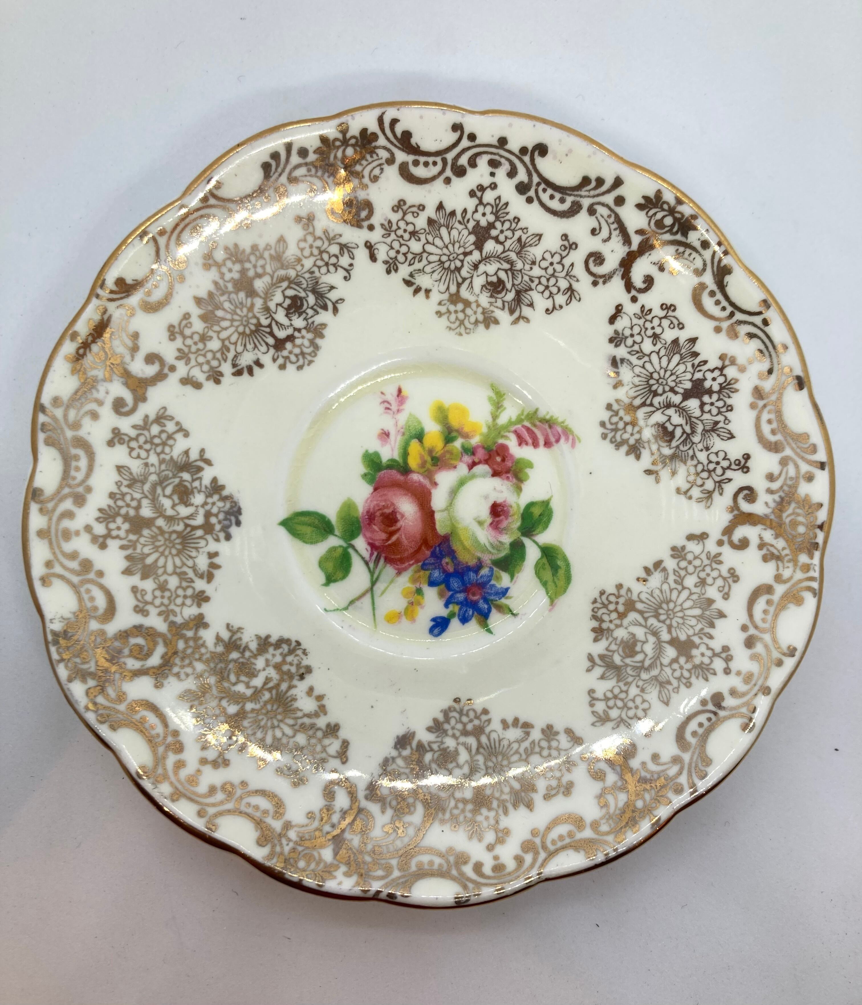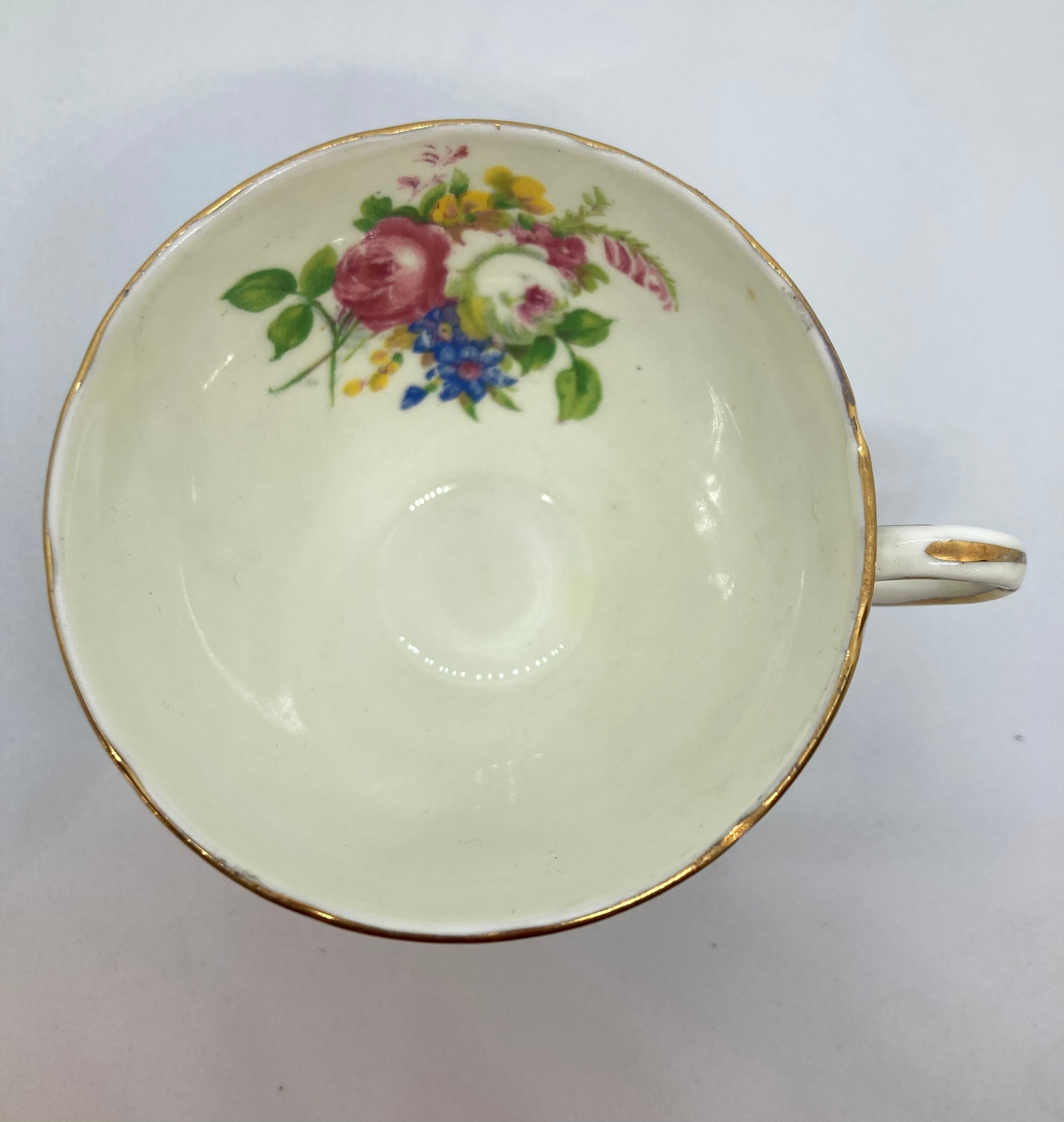 英国 FOLEY窯 チャイナボーン デミタスカップソーサーです。バラ柄がとてもチャーミングです。欠け、クラック無く金彩の状態も良好です。カップ口縁径72ミリ ソーサー径118ミリ 全体高63ミリ。